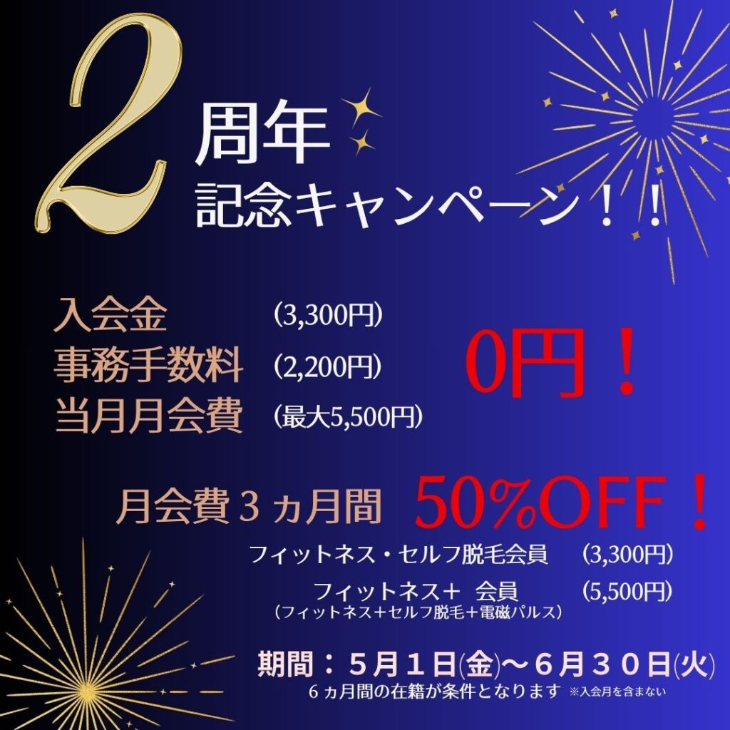 当店では2周年記念に伴い、5月1日~6月30日まで 大変お得なキャンペーンを実施します😍